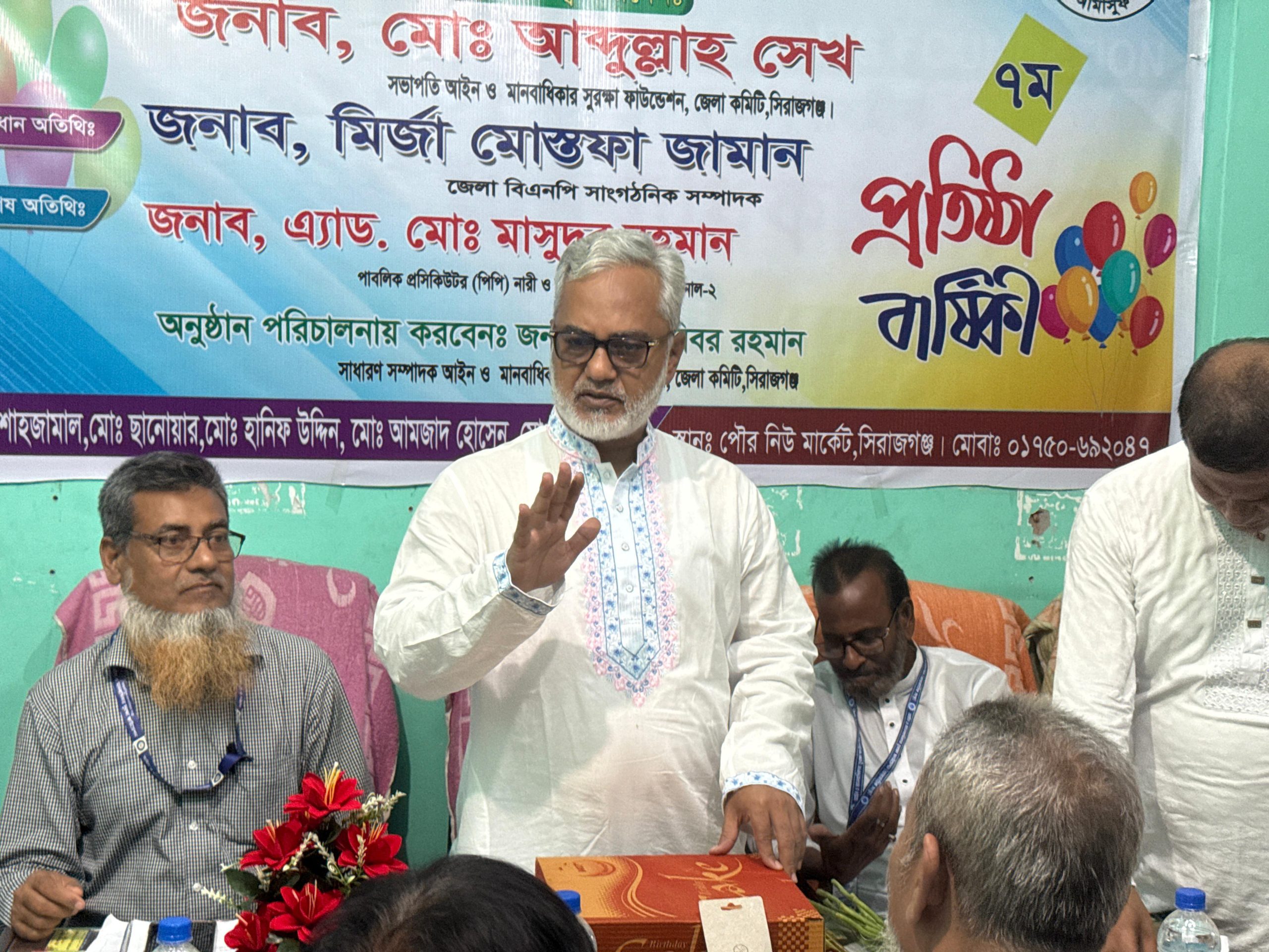 গণমানুষের অধিকার রক্ষা ও ন্যায়বিচার প্রতিষ্ঠার অঙ্গীকারকে সামনে রেখে সিরাজগঞ্জে উদযাপিত হলো ‘আইন ও মানবাধিকার সুরক্ষা ফাউন্ডেশন’-এর ৭ম প্রতিষ্ঠাবার্ষিকী