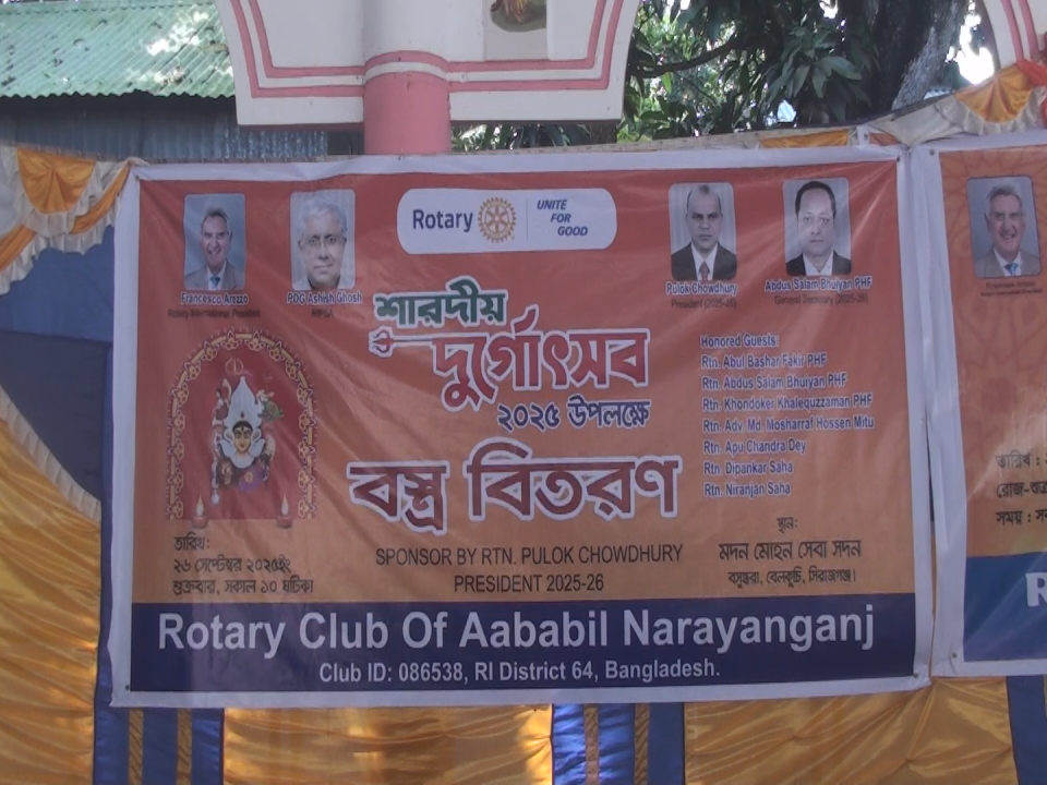বেলকুচিতে শারদীয় দুর্গা পূজা উপলক্ষে বস্ত্র বিতরণ করলেন রোটারিয়ান পুলক চৌধুরী