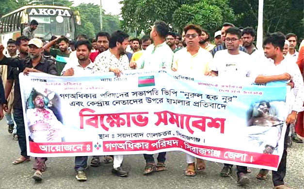 গণঅধিকার পরিষদের সভাপতি সাবেক ভিপি নুরুল হক নুরের উপর হামলার প্রতিবাদে যমুনা সেতু পশ্চিমপাড় গোলচত্বর এলাকায় মহাসড়ক অবরোধ করে বিক্ষোভ করা হয়েছে। শনিবার দুপুরে কেন্দ্রীয় কর্মসূচির অংশ হিসেবে এ বিক্ষোভ করেন গণঅধিকার পরিষদের নেতাকর্মীরা। এ কর্মসূচিতে জেলা গণঅধিকার পরিষদের সভাপতি মোমিন ফয়সাল, সদস্য সচিব ইউসুফ আলী, জেলা শ্রমিক অধিকার পরিষদের সভাপতি সোহরাওয়ার্দী হোসেন, জেলা ছাত্র অধিকার পরিষদের সাধারণ সম্পাদক এম আই মনি ও উপজেলা গণঅধিকার পরিষদের সদস্য সচিব হাসমত সরকার প্রমূখ উপস্থিত ছিলেন। এ সময় তারা বিভিন্ন স্লোগান দিয়ে বিক্ষোভ প্রদর্শন ও হামলাকারীদের দ্রুত গ্রেফতারের দাবি জানান। এ বিষয়ে যমুনা সেতু পশ্চিম থানার ওসি আসাদুজ্জামান আসাদ বলেন, ভিপি নুরুল হক নুরের ওপর হামলার প্রতিবাদে কেন্দ্রীয় কর্মসূচীর অংশ হিসেবে যমুনা সেতু পশ্চিমপাড় গোলচত্বরে এ অবরোধ করে গণঅধিকার পরিষদের নেতাকর্মীরা। প্রায় আধা ঘন্টা অবরোধে সেতুর উভয়প্রান্তে যানজটের সৃষ্টি হয়। দূরপাল্লার যাত্রীদের দুর্ভোগ বিবেচনায় অবরোধ তুলে নেয়া হয়। এ সময় আইনশৃঙ্খলা রক্ষাকারী বাহিনীর সদস্যরা উপস্থিত ছিলেন। অবরোধ তুলে নেয়ার পর মহাসড়কে যান চলাচল স্বাভাবিক হয়।