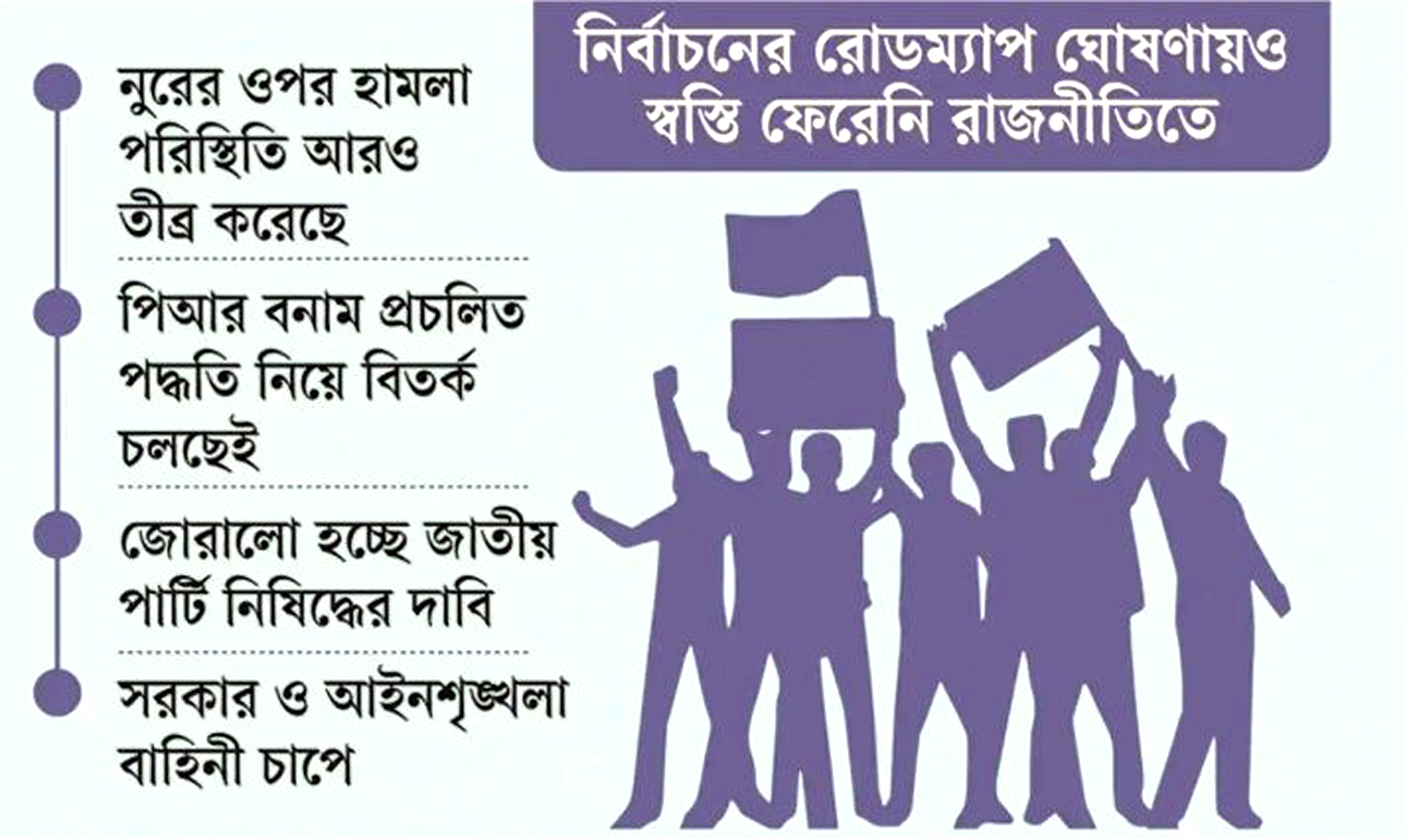 নির্বাচন কমিশন (ইসি) থেকে ত্রয়োদশ জাতীয় সংসদ নির্বাচনের রোডম্যাপ ঘোষণার পরপরই হঠাৎ উত্তপ্ত হয়ে উঠেছে দেশের রাজনীতি। সামাজিক যোগাযোগমাধ্যম থেকে শুরু করে রাজনৈতিক দলসহ সর্বত্র এক ধরনের অস্বস্তি ও অস্থিরতা দেখা দিয়েছে। চলছে সমাবেশ, অবরোধ, বিক্ষোভ, নানা ইস্যুতে দাবি আদায়ের জন্য বিভিন্ন কর্মসূচি। সাবেক মন্ত্রী আব্দুল লতিফ সিদ্দিকীসহ ১৬ জনের গ্রেপ্তার, প্রকৌশল বিশ্ববিদ্যালয় ও ডিপ্লোমা ইনস্টিটিউটের ছাত্রদের আন্দোলন, শিক্ষকদের আন্দোলন, গণঅধিকার পরিষদের সভাপতি নুরুল হক নুরের ওপর হামলার ঘটনাসহ বিভিন্ন ঘটনায় রাজনৈতিক অঙ্গনে তীব্র প্রতিক্রিয়া চলছে। প্রায় সব রাজনৈতিক দল নুরুল হক নুরের ওপর হামলার নিন্দা জানিয়েছে। নুরের ওপর হামলার ঘটনায় নিন্দা জানিয়েছে অন্তর্বর্তীকালীন সরকারও। বিষয়টি নিয়ে বিশেষ সভা ডেকেছেন ঢাকা মহানগর পুলিশের উচ্চপদস্থ কর্মকর্তারা। আর আজ রোবাবর প্রধান উপদেষ্টা বৈঠকে বসবেন বিএনপি, জামায়াত ও এনসিপি নেতাদের সঙ্গে। সব মিলিয়ে সরকার পরিস্থিতি নিয়ন্ত্রণ করে সব পক্ষকে শান্ত রাখার চেষ্টা করছে। তার পরও উঠছে নানা প্রশ্ন। ঘোষিত রোডম্যাপ অনুযায়ী জাতীয় সংসদ নির্বাচন হবে কি না, সংস্কার প্রশ্নে ঐকমত্যে পৌঁছানো সম্ভব হবে কি না, নির্বাচন পিআর পদ্ধতিতে না প্রচলিত সংবিধান অনুযায়ী, অস্থির পরিবেশ তৈরি করে বিশেষ কোনো মহল ফায়দা হাসিলের চেষ্টা করছে কি না ইত্যাদি অনেক প্রশ্ন ঘুরপাক খাচ্ছে সবার মধ্যে।