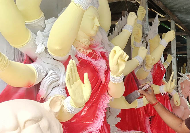 সিরাজগঞ্জে শারদীয় দুর্গাপূজা উপলক্ষে প্রতিমা তৈরির ধুম