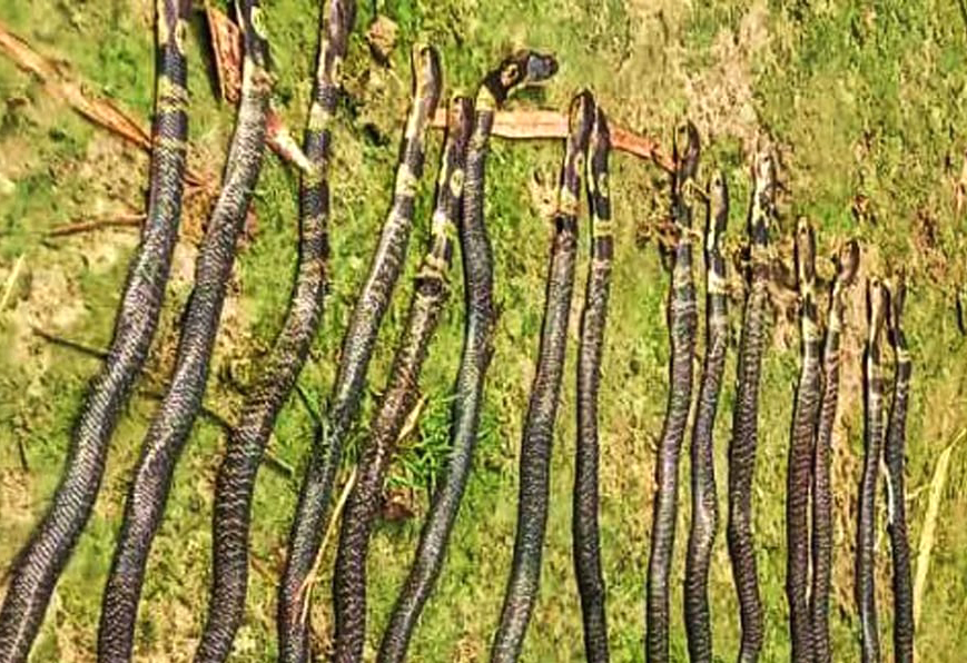 সিরাজগঞ্জে ১৫টি কেউটে সাপ পিটিয়ে হত্যা এলাকায় আতংক